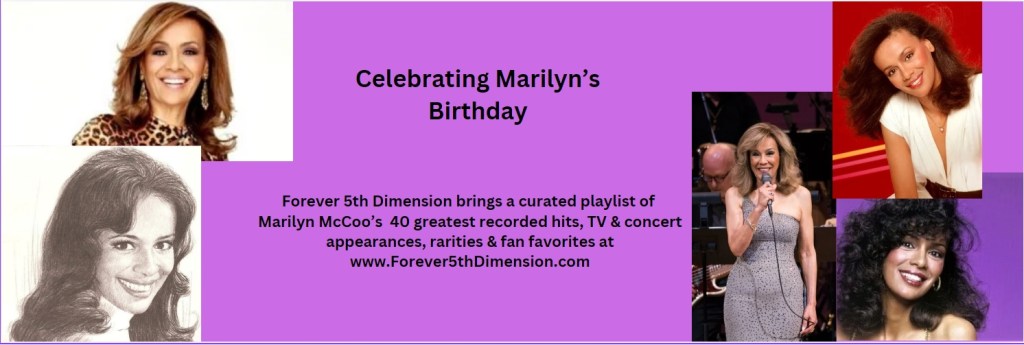 September 30 is a memorable day for the millions of fans of Marilyn McCoo for her birthday brings a time of reflection on her artistry and exemplary persona. The 7-time Grammy award winner whose roots are with the legendary quintet, The 5th Dimension along with hubby of over 5 decades & duet partner, Billy Davis, Jr. is known for her elegance, way with a torch song, and a smooth, soulfully healing multi-octave voice that is simply as astonishingly beautiful as the woman herself. In honor of her birthday, for 2024, FOREVER 5th DIMENSION is pleased to curate an expanded 40 performances–her hit solos with The 5th, her “Solid Gold” tunes, live TV segments, inspirational, Broadway and movie theme moments, yes, a real “deep dive” into the musical magic that is La McCoo.