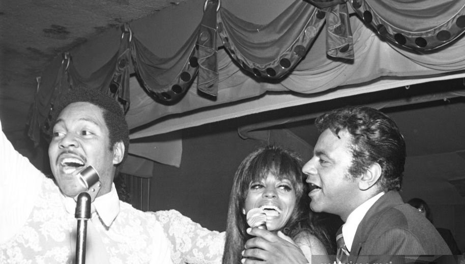 (Above: Billy Davis, Jr. having sing-along fun with Johnny Mathis and Diana Ross when The 5th Dimension headlined at the Royal Box, Manhattan)